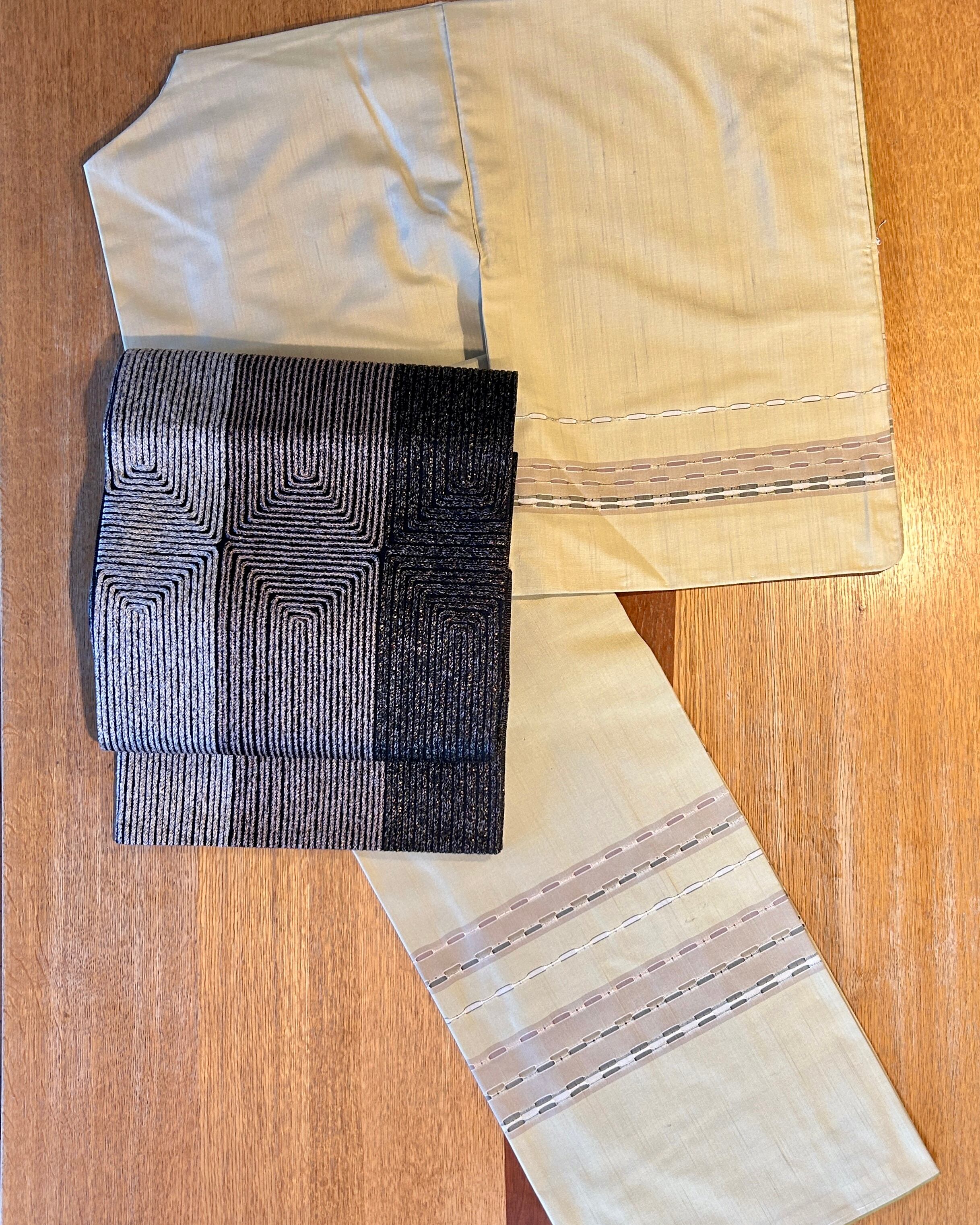 金糸銀糸が織り込まれた、しっとりと柔らかい軽くてなめらかな帯です。