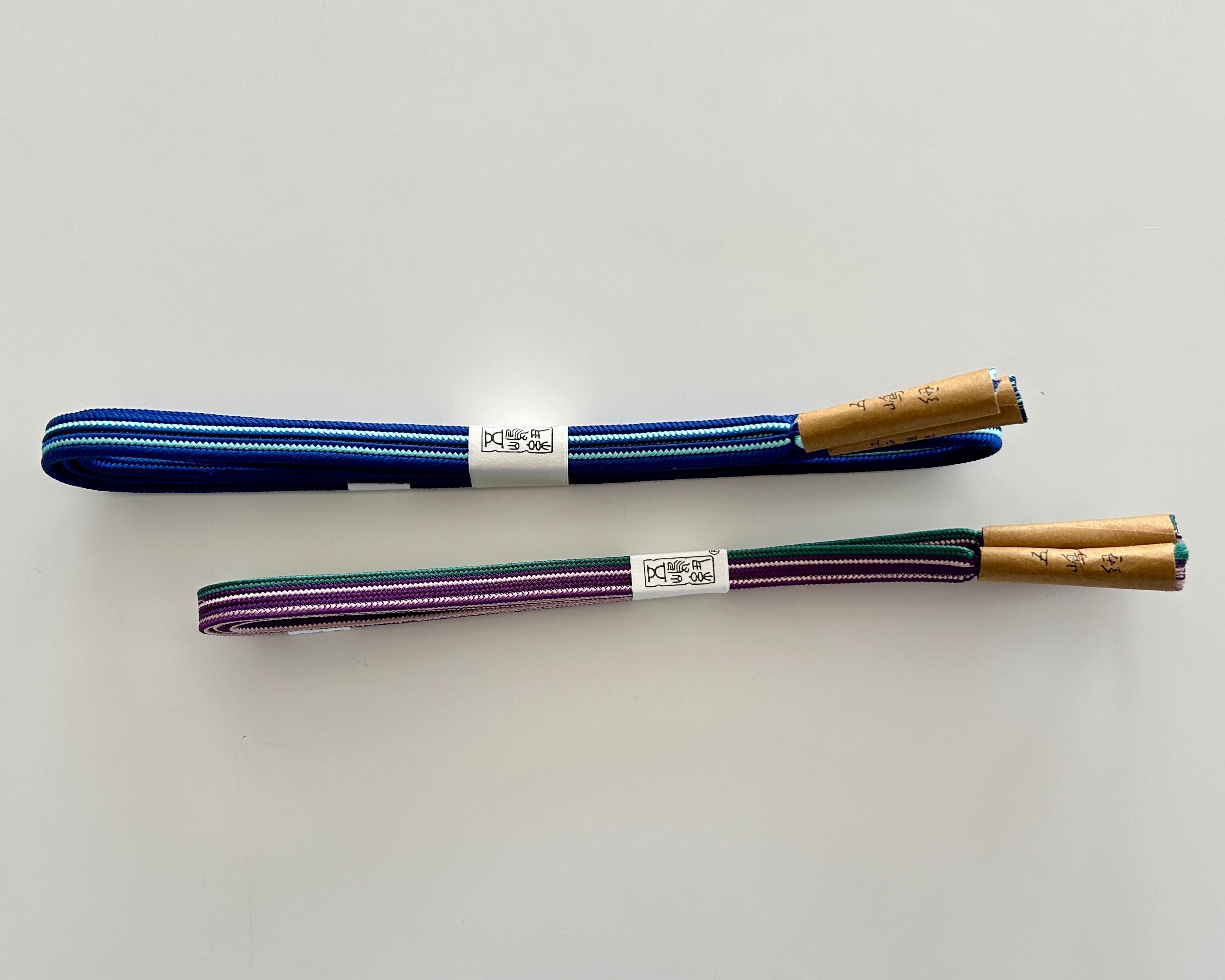 落ち着いた濃紺を基調に、差し色が美しく映える上品な配色の平組帯締め。