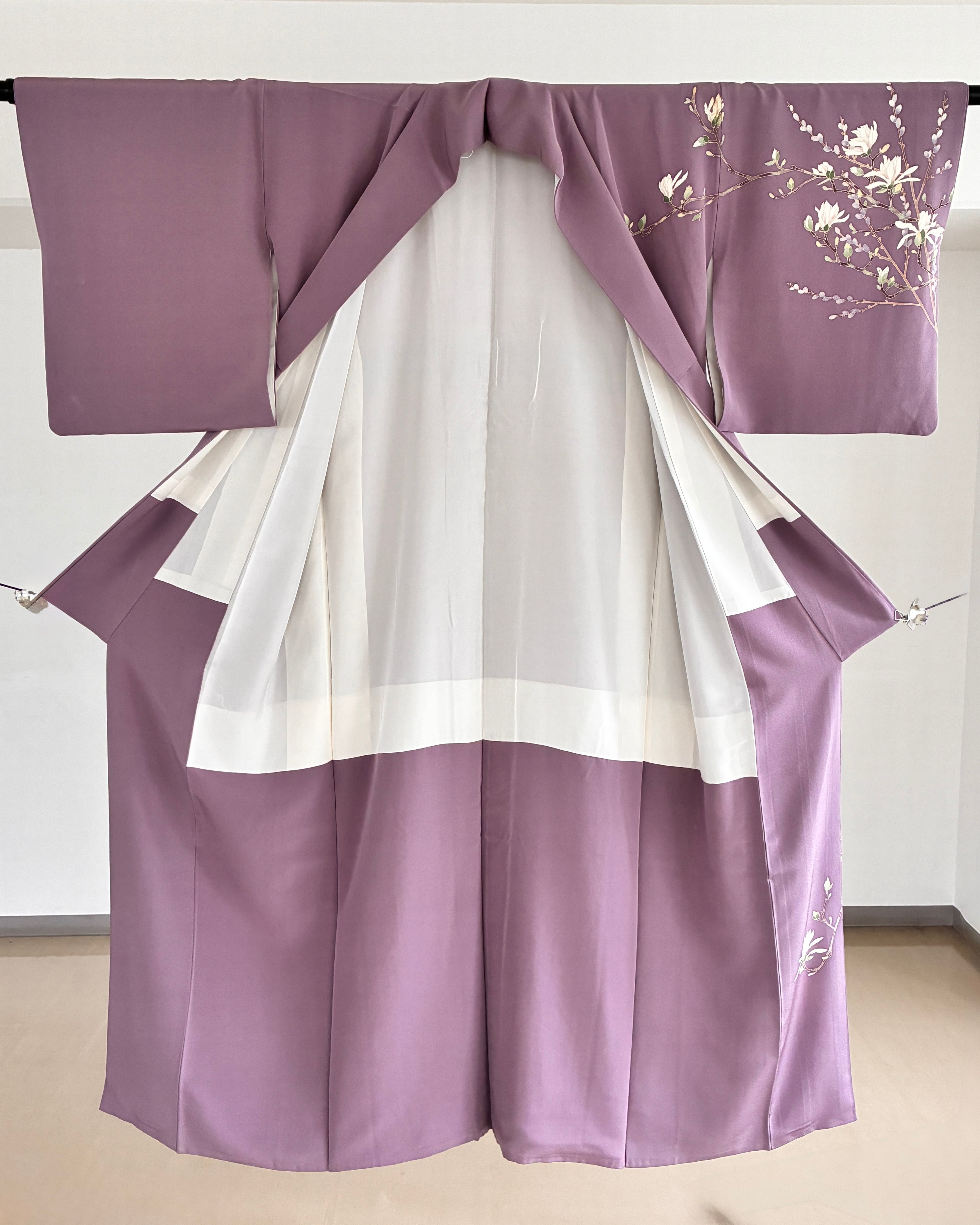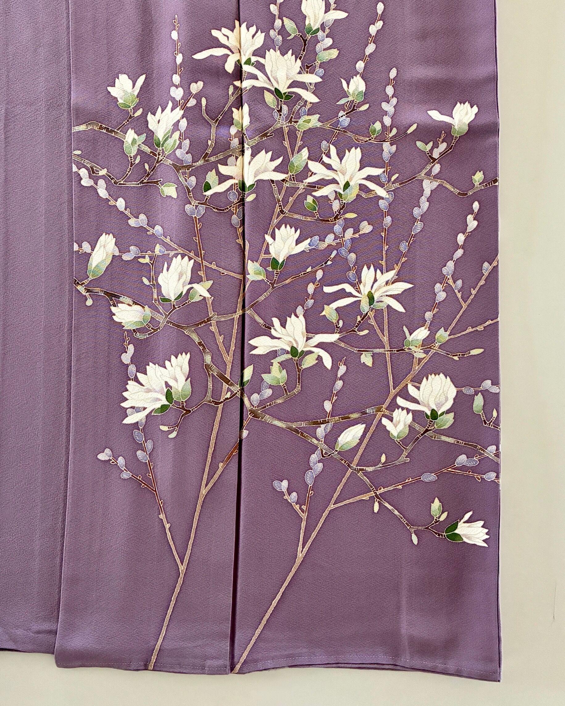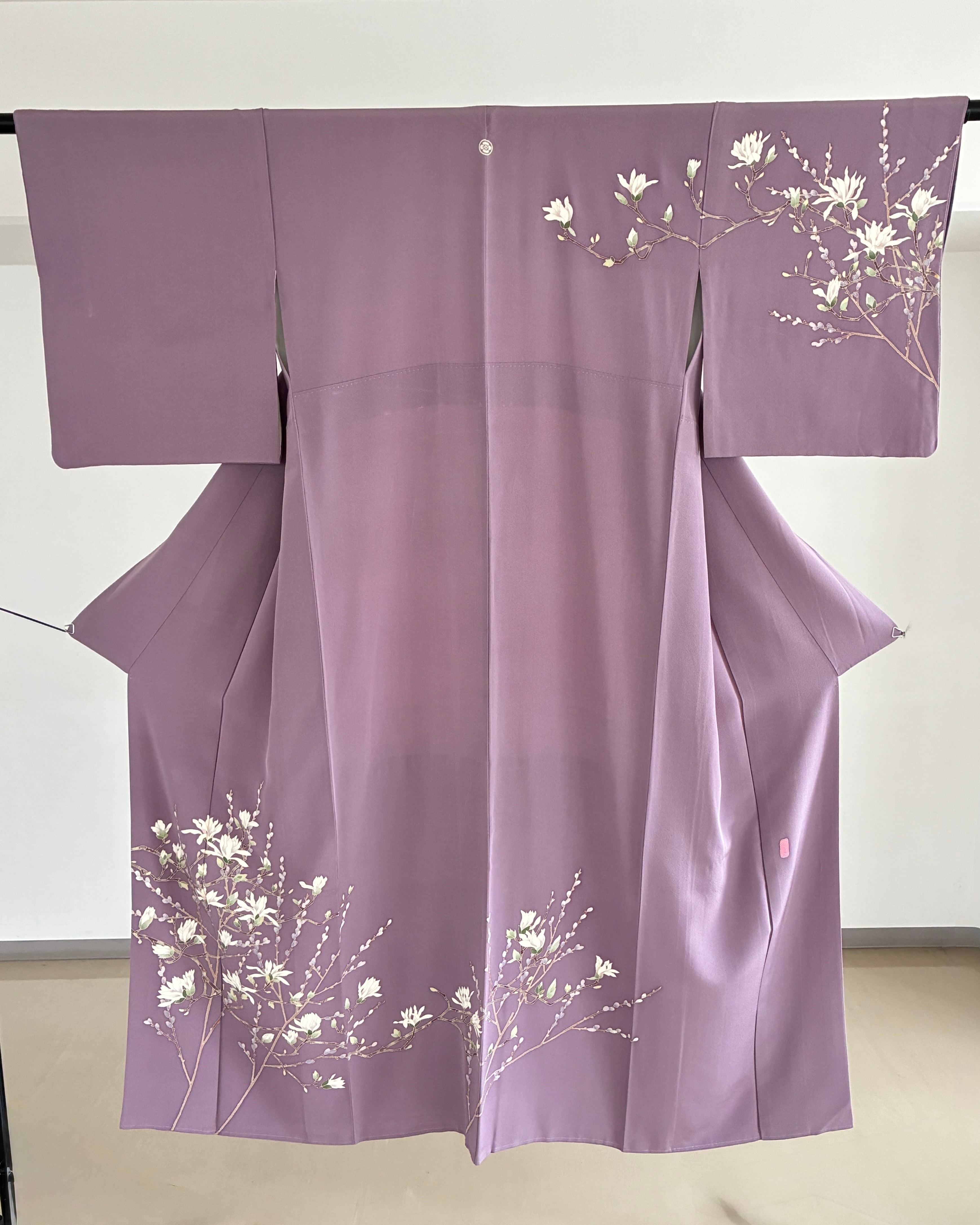 【袷 訪問着 正絹 藤色 枝花文】卒業式 入学式 春 木蓮やこぶしを思わせる上品な着物 K-あ-B-139